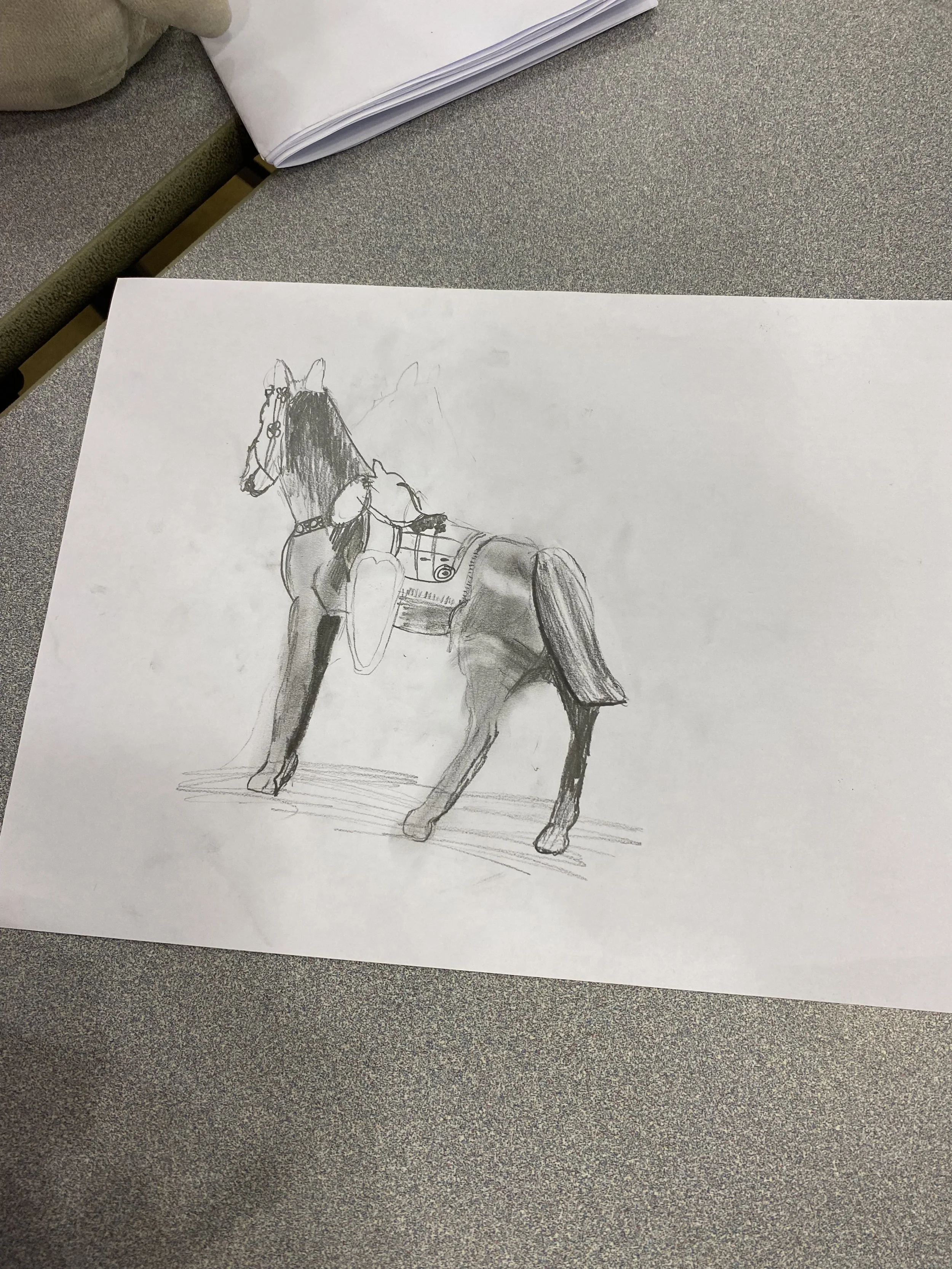 Animals also offer comfort and relaxation, so in turn have a calming effect, as the person drawing, painting or sculpting their choice of animal, is indirectly connecting with this animal and therefore is transported.